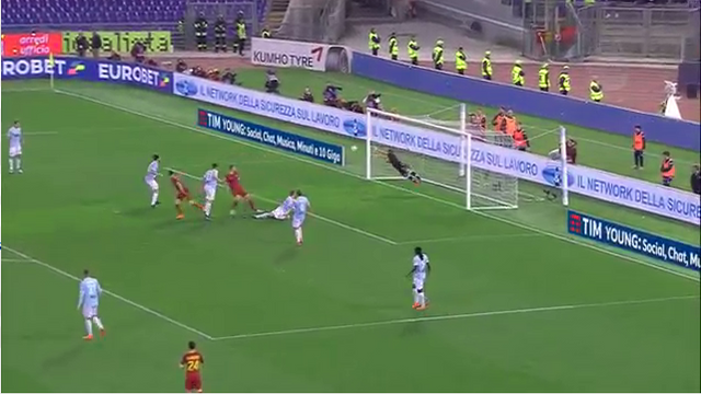 Immobile gioca come di consuetudine sulla linea del fuorigioco, ma non riesce quasi mai ad evitarlo, anche per colpa dell’imprecisione e dell’intempestività del lancio. Fatto sta che alison non corre particolari pericoli e le uniche occasioni da gol sono tiri dal limite dell’area estremamente imprecisi, in particolare uno di Parolo che si avventa su un pallone praticamente fermo in area trigoriota sparandolo altissimo.