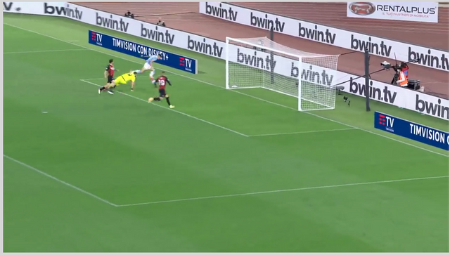 Liscio clamoroso a porta vuota sul palo di Immobile, però bravo a seguire l’azione. |
